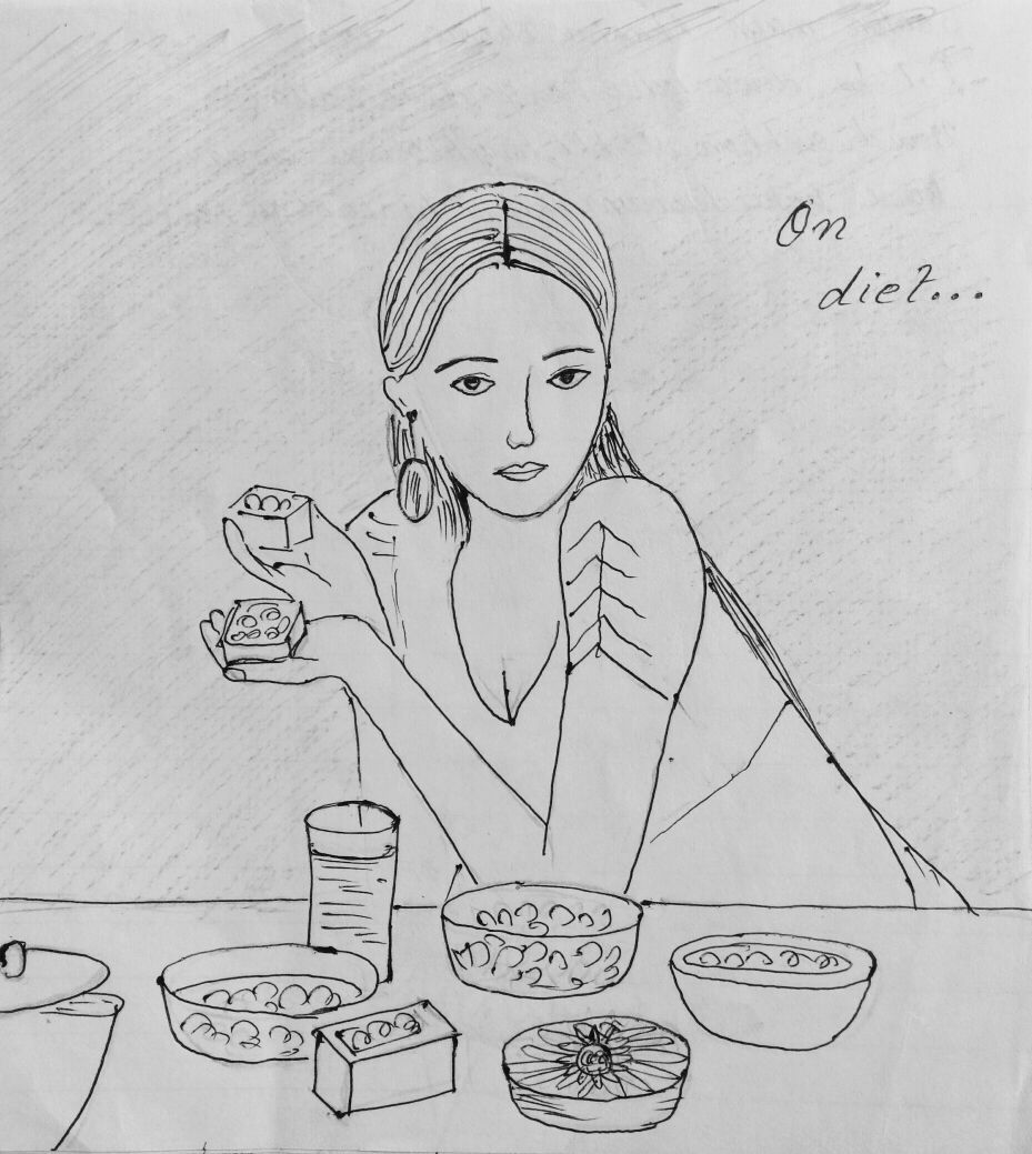 Diet: A healthy diet is a must. Make your own diet plan. Stick to it. Include loads of veggies and fruits in your diet. Spice up your salads and dishes to eliminate boredom. Drink a lot of water to flush out toxin from your system. Drink healthy fluids such as fruit and vegetable juices (without adding sugar/salt). Decrease carbohydrate content (ex: rice, potato, white bread, white flour) and increase protein intake (ex: fish, eggs, soy, lentils, chickpeas). Avoid carbonated and sugary drinks. Sugary and highly processed food items should be kept at bay. Keep a cheat day per week.